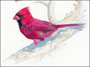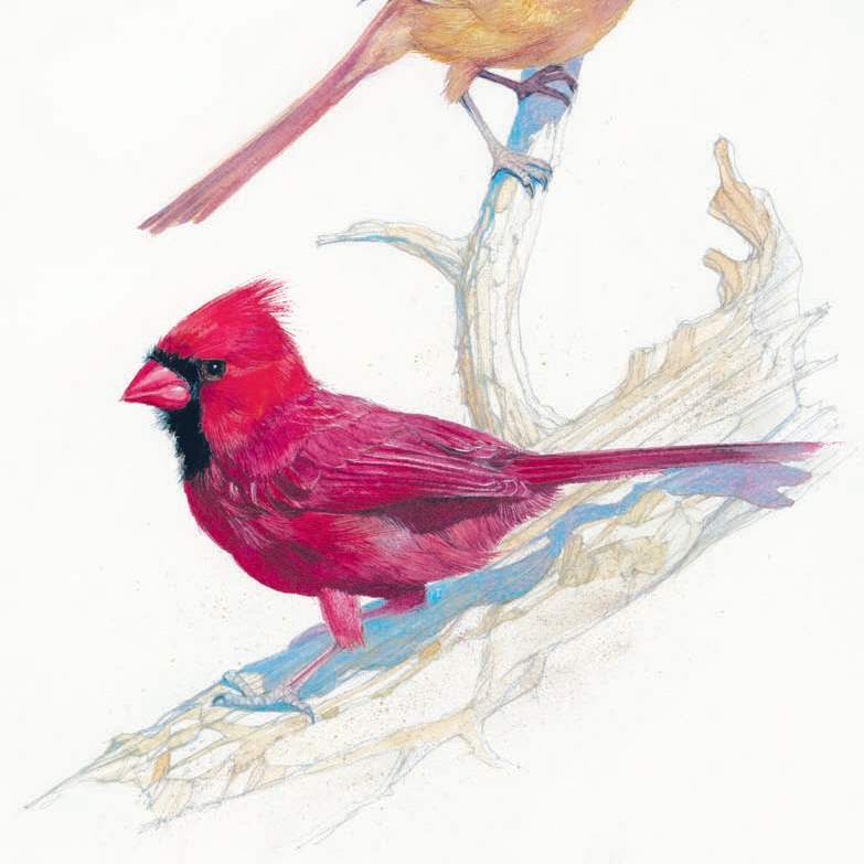 A female and male cardinal.
