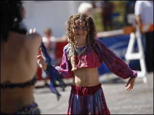 Alena Starr, 10, dances with her mother Amira Starr, both of Mesmeric Belly Dancing.