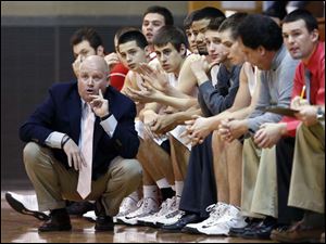 Bedford head coach Nick Lowe watches the action against Ann Arbor Pioneer.