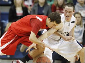 St. John's Jesuit's Nick Felhaber (10) steals the ball from Bowsher's Justin Neptune (5).