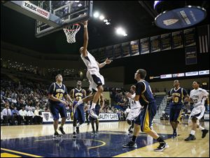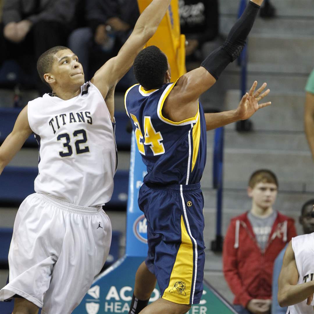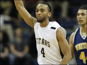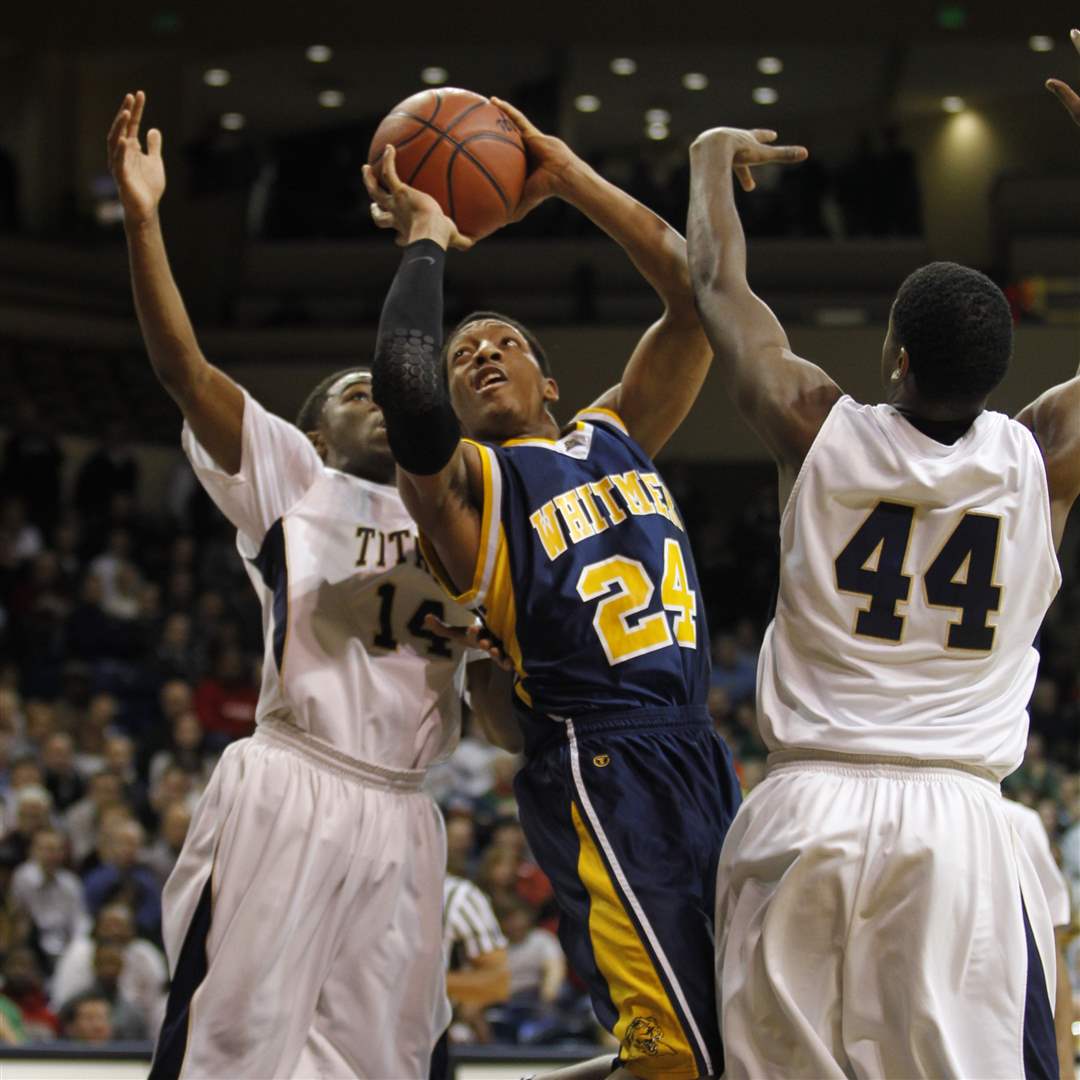 Whitmer's Nigel Hayes (23) soars to the basket against the Titans during the second quarter.