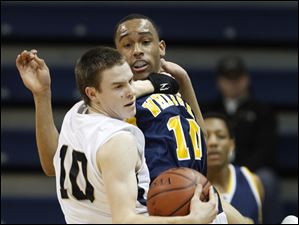 Whitmer's Nigel Hayes (23) tries to get past St. John's Marc Loving (32) during the third quarter.