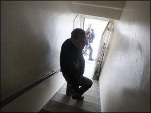 Lucas County sheriff's deputies Corey Cole and Jennifer Domschot leave the apartment after checking out a vacant unit.