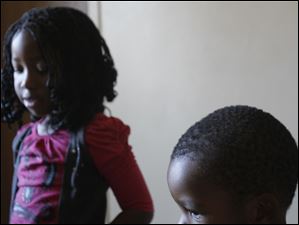 De'Niyah Patrick and her cousin, Marcus Hill, play in an upstairs room in De'Niyah's mother's apartment in the Brand Whitlock Homes.