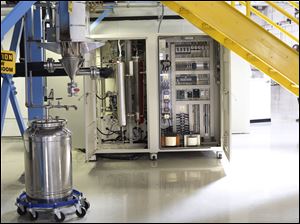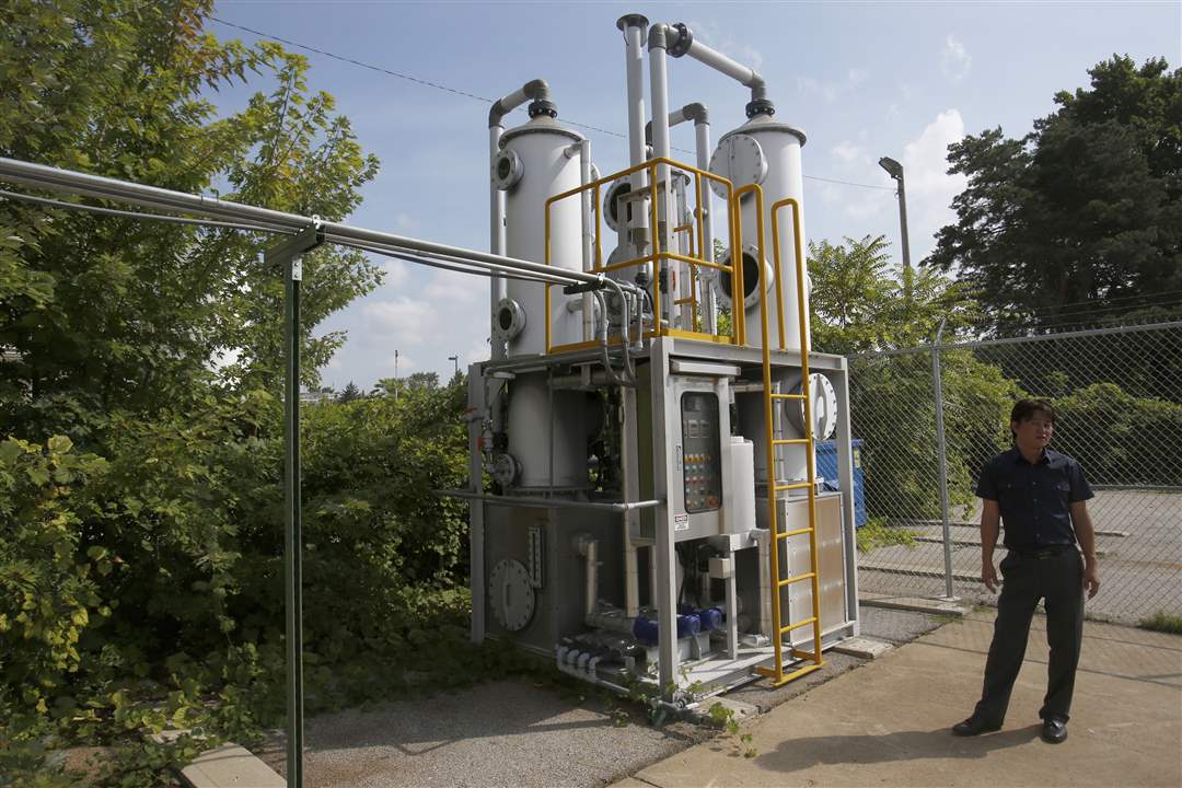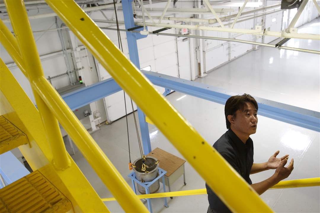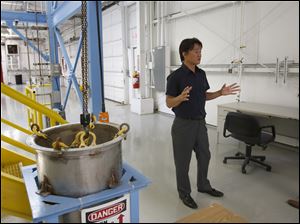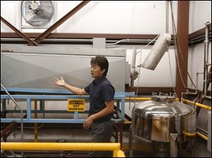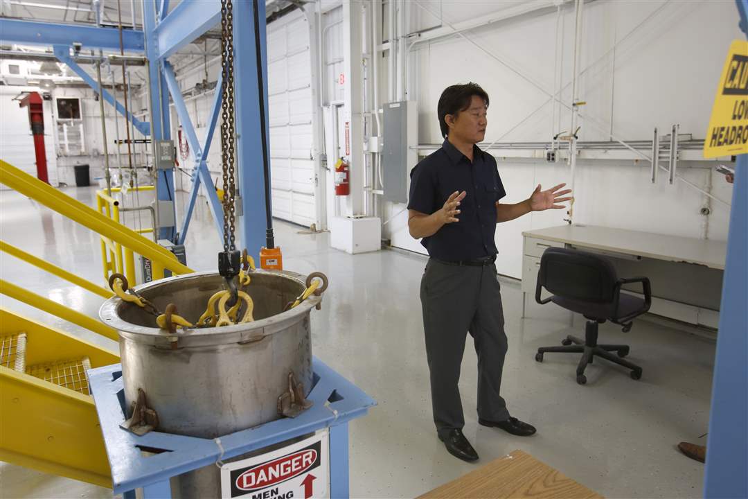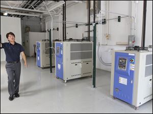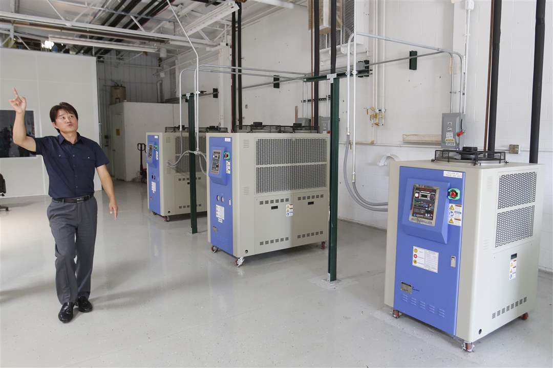 Buckeye Silicon Chief Executive Officer Harrison Choi gives a tour of the company's facility in Toledo on Aug. 22, 2013. The company received more than $3 million from the state of Ohio to produce high-quality polysilicon for solar panels. Currently, the machinery isn't working. The Ohio Air Quality Development Authority declared a loan it gave to the company in default in 2012.