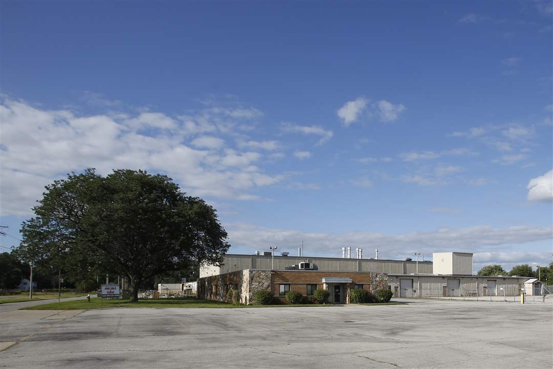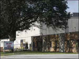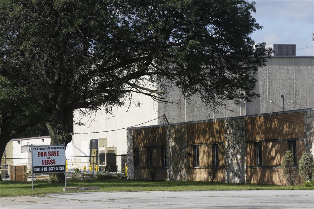 A "For Sale" sign is posted outside the offices and factory floor of the Toledo-based business Buckeye Silicon.