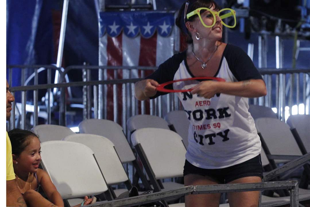 Toledo resident Cassandra Reyes is chosen to interact with a clown during the Carson & Barnes Circus at the Westfield Franklin Park Mall in Toledo, Ohio.