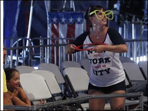 Jacqueline Coronel of Peru spins multiple hoops in her act during the two-hour circus show.
