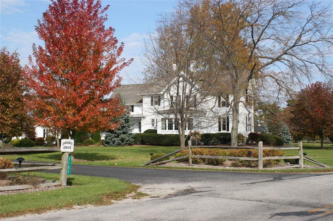 A view of the farm house and main drive entrance to the the Castalia Farms complex, from Heywood Road.