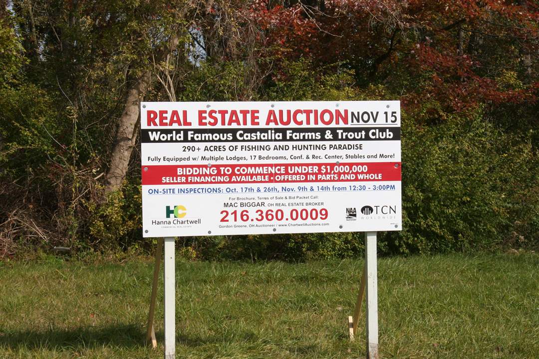 A sign advertising the auction sits at the corner of the Castalia Farms property, at the junction of Heywood and Prairie roads.