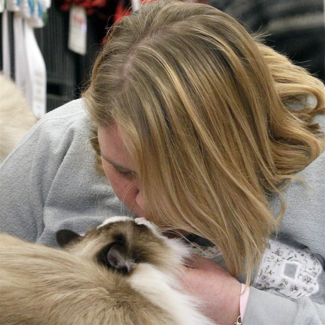 Lisa Thomas of Maumee gives her Ragdoll cat named Angel a kiss.