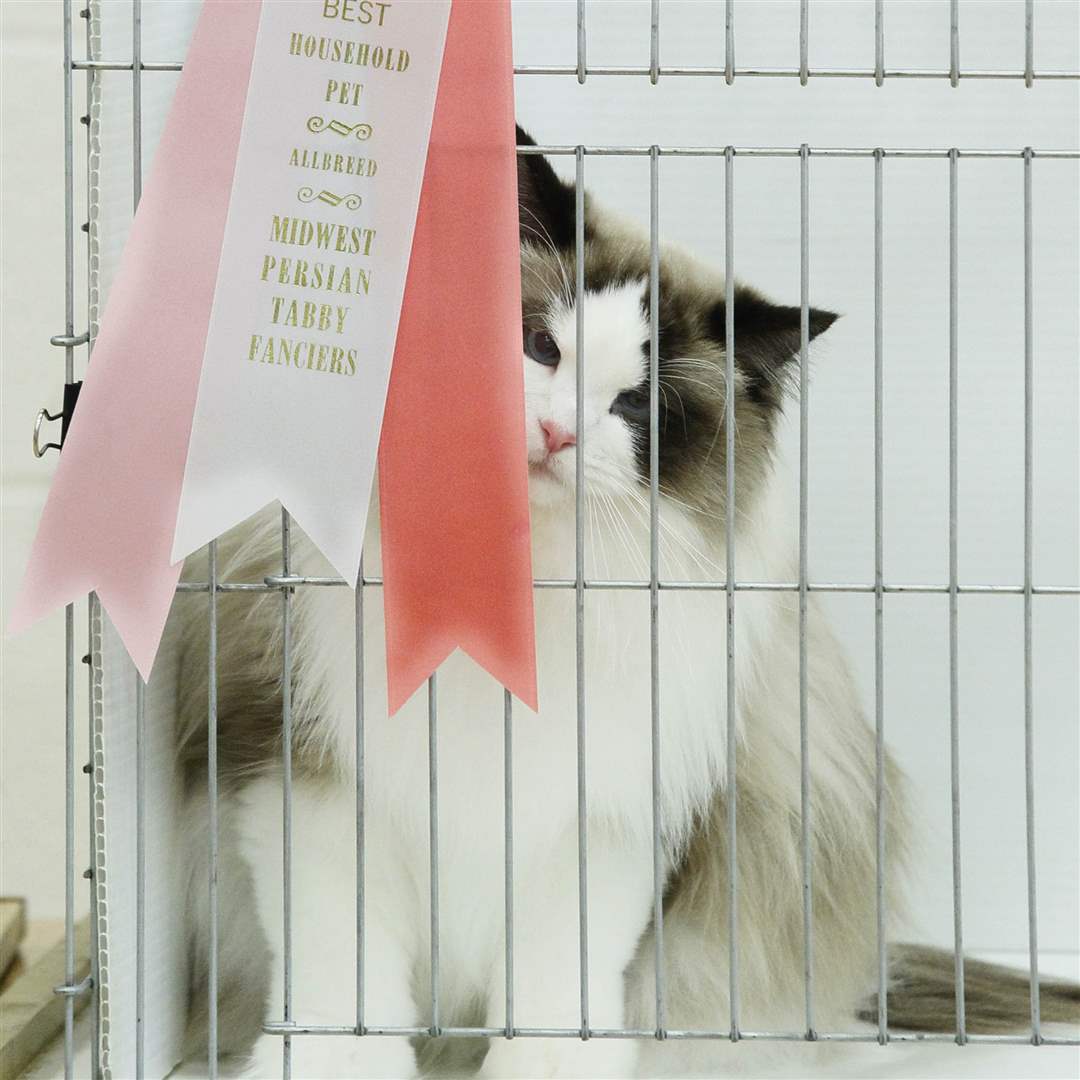 A Ragdoll cat named Angel from Maumee eyeballs her ribbon for winning "Second Best Household Cat."