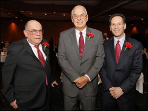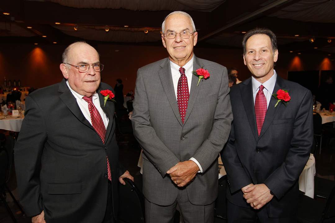 Jim Shindler, left, Dick Faist and Jay Feldstein at the Central Catholic Celebrity Wait Night and roasting of Marty Holmes.