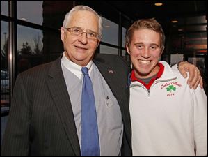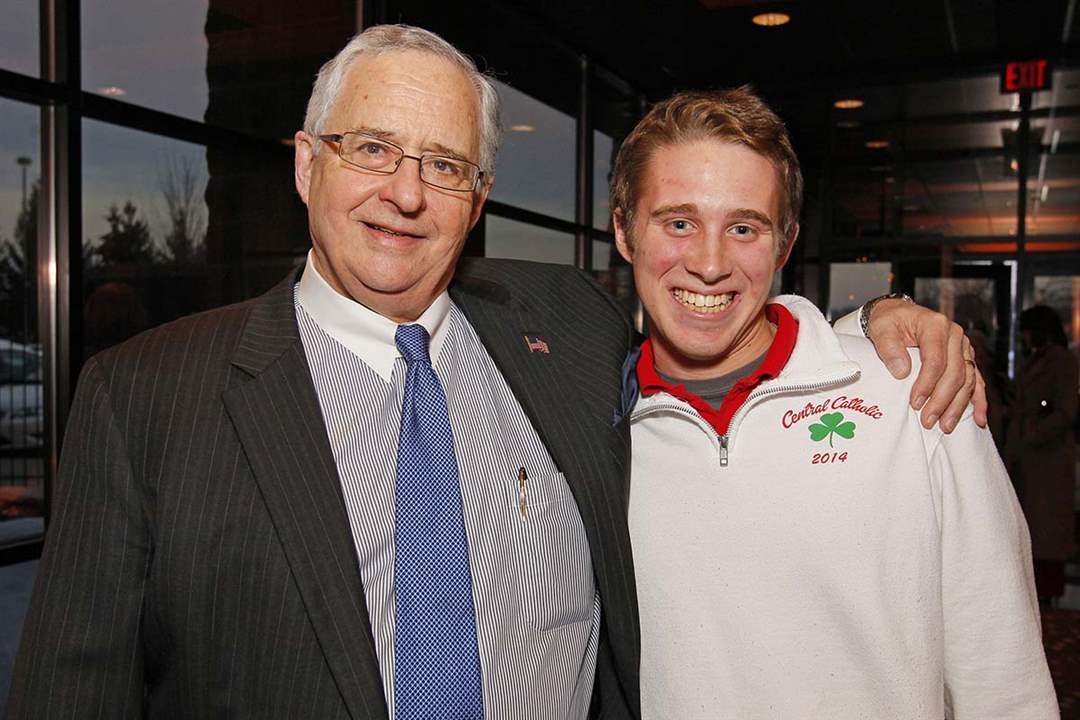 Joseph Zerbey IV with senior James Pierce at the Central Catholic Celebrity Wait Night and roasting of Marty Holmes.