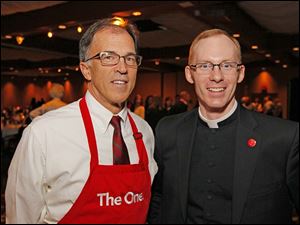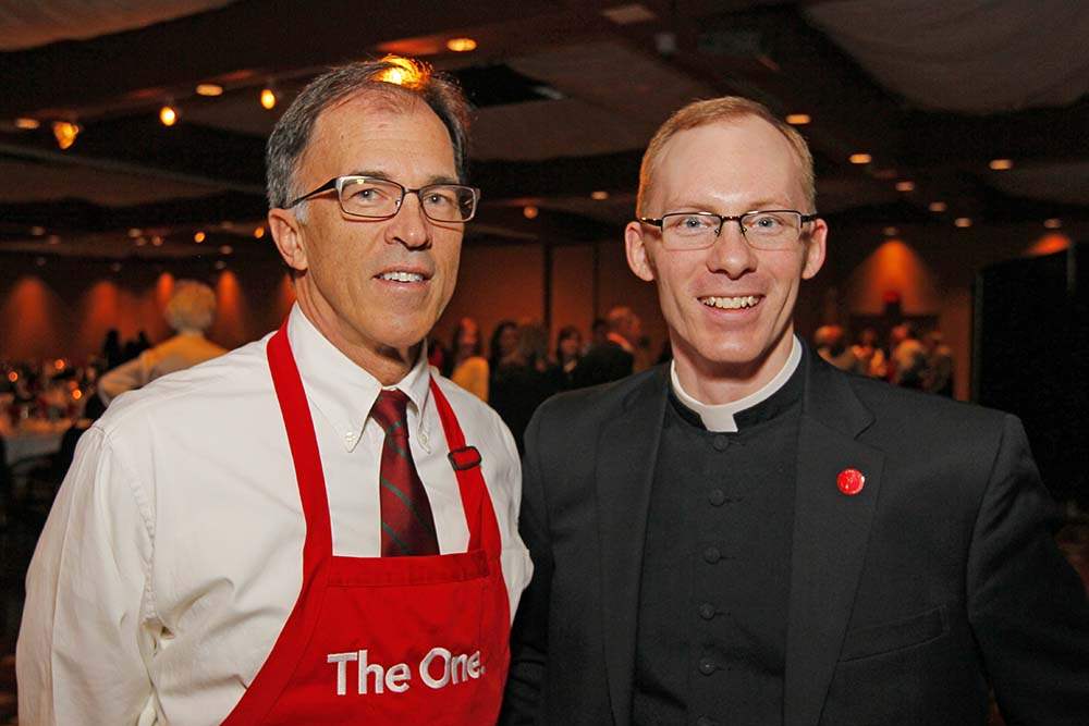 Tom Maj, president of Central Catholic, and Fr. Matthew Radder, Priest Leader at the school, at the Central Catholic Celebrity Wait Night and roasting of Marty Holmes.