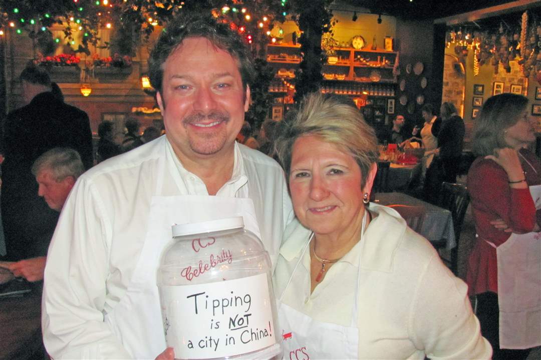 Celeb waiters Bob Arthur and Jean Larsen. He did the "tipping" jar.