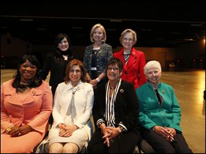 The 2014 YWCA Milestones Awards honored, from left, rear: Leslie Adams, Marianne Ballas, and Prof. Susan Martyn. From left, front: Vallie Bowman-English, Dr. Sonia Najjar, Kim Sidwell, and Barbara Eikost.