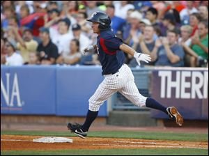The Chiefs' Jeff Fraizer grounds out in the fourth inning against the Mud Hens.