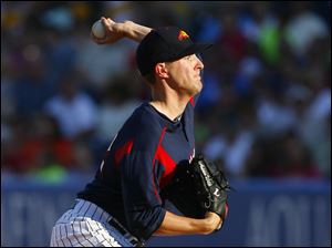 Toledo pitcher Adam Wilk sends the ball toward home plate in the first inning.