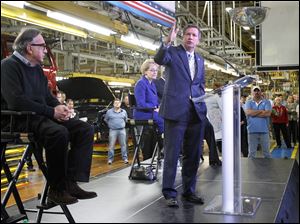 Ohio Gov. John Kasich, at the podium, said Chrysler's investment should help remove what he called “sort of a pall hung over” the city of Toledo.