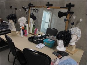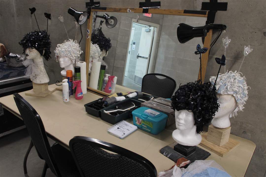 A makeup table backstage.