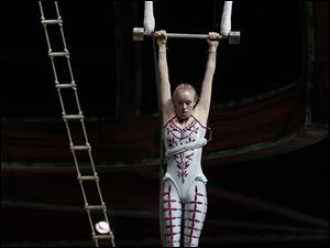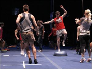 Fire-knife performer Micah Naruo eats fire during the rehearsal for the Cirque du Soleil at the Huntington Center in Toledo.