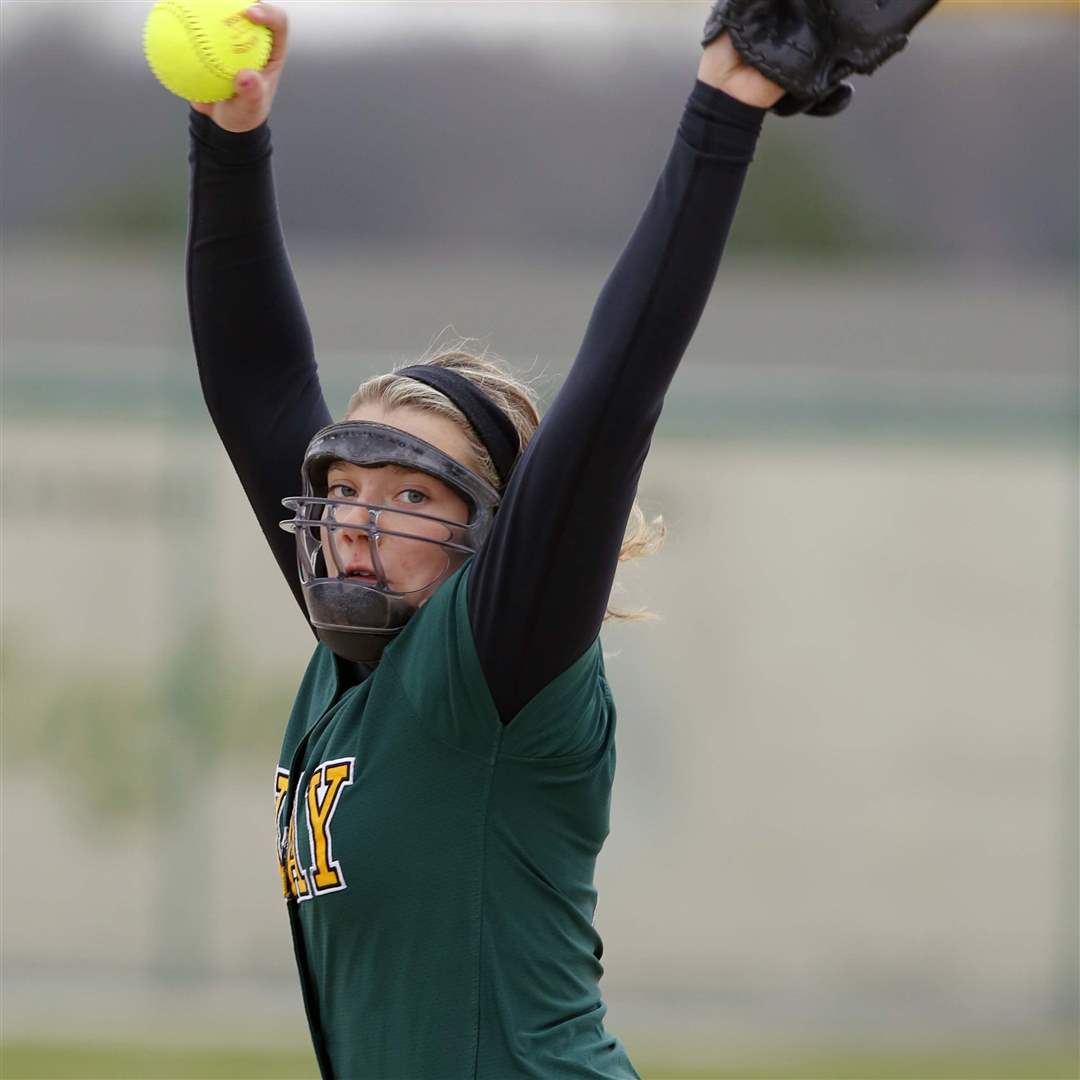 Oregon Clay pitcher Brooke Gallaher throws the pitch.