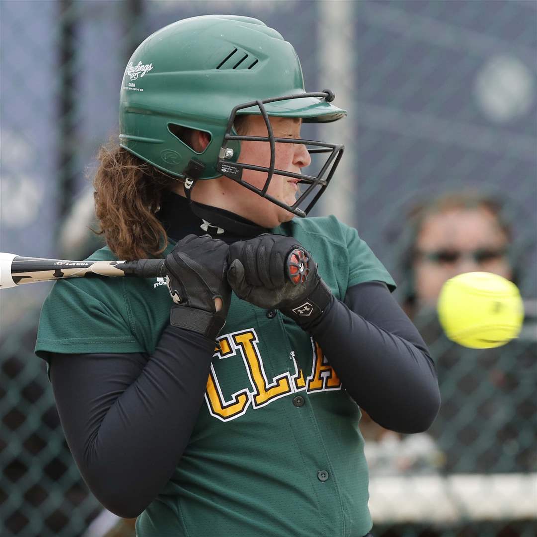 Oregon Clay's Hayley Schiavone dodges an pitch inside during the third inning.