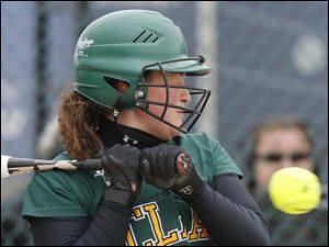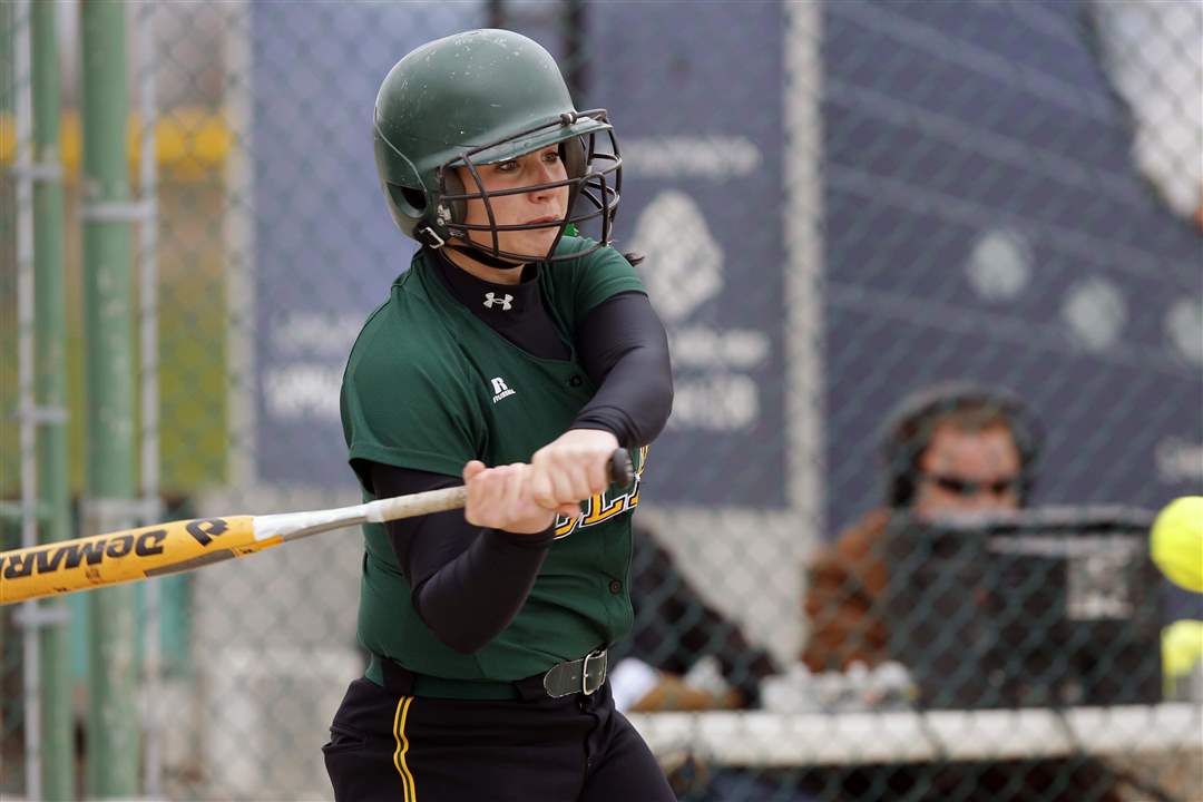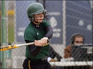 Oregon Clay's Jamie Miller hits a home run against Notre Dame during the third inning.