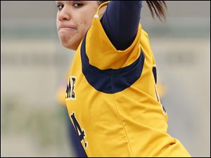 Notre Dame pitcher Cassie Gillespie gets ready to unload a throw.
