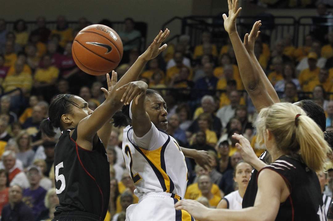 UT's Haylie Linn aims for the bucket during the WNIT 2nd round against Cincinnati at University of Toledo's Savage Arena.