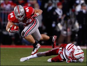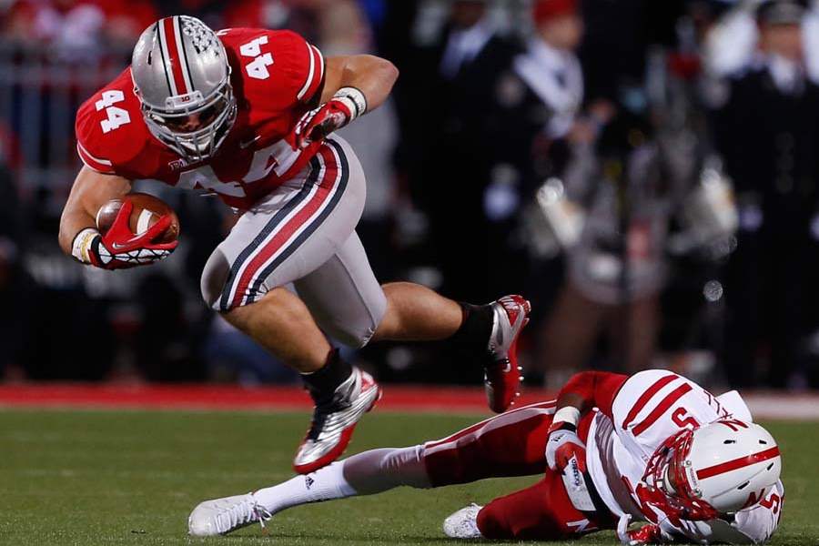 Ohio State's Zach Boren (44) runs the ball against Nebraska's Josh Mitchell (5).