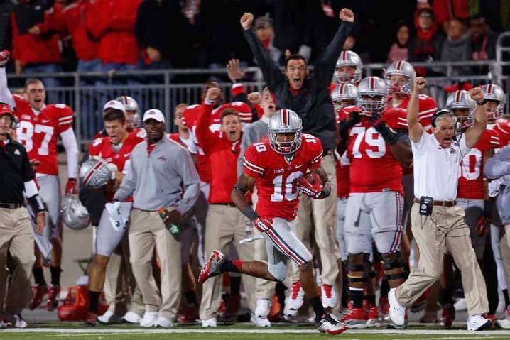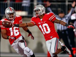 Ohio State's Corey Brown (10) celebrates his touchdown.
