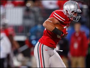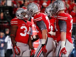 Buckeyes'Carlos Hyde (34) scores a touchdown in the third quarter.