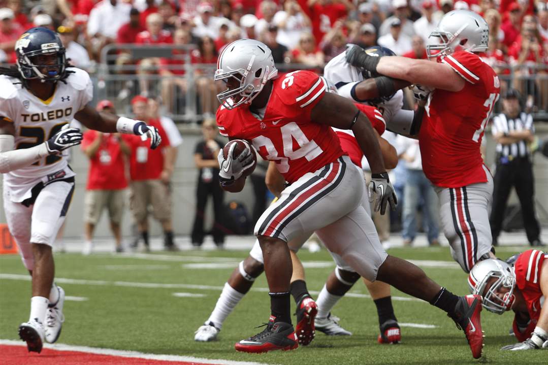 Ohio State running back Carlos Hyde (34) runs the ball against Toledo Saturday, 09/10/11, in Columbus, Ohio.