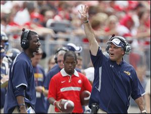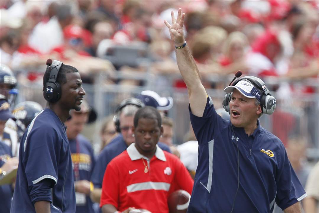 Toledo head coach Tim Beckman gives instructions during the fourth quarter.