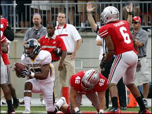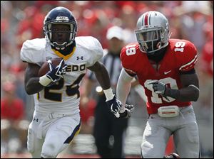 Toledo's Terrance Owens (2) carries the ball against Ohio State.