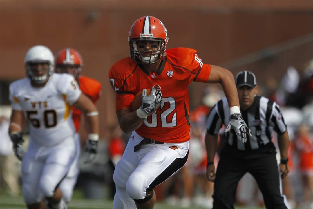 BGSU's Alex Bayer scores the first touchdown of the game against Wyoming.
