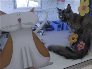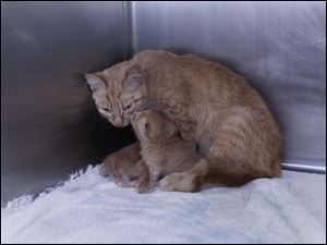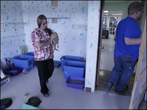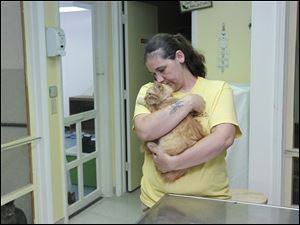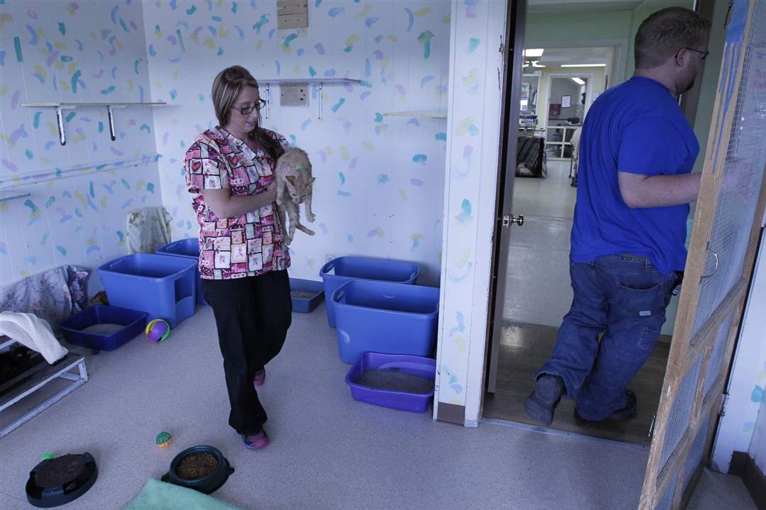 Medical manager Megan Hobbs watches one of the confiscated cats. She determined the cat had been pregnant and reunited her with her 3 kittens.