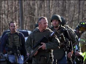 Heavily armed Connecticut State troopers are on the scene at the Sandy Hook School.