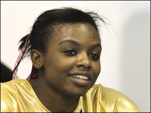 Perrysburg High School gymnast Chelsea Williams competes in the floor exercise of the District Gymnastics Tournament.