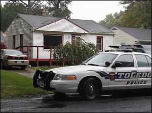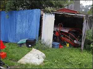 CTY bones30p 09/29/2013 The Blade/Lori King Allegedly, bones of a dog shot in the head are buried under or near this shed in the backyard of a home on Luann Ave. in Toledo, Ohio.