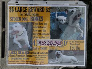A missing dog flyer at the site of where Bones' bones were dug up from the backyard of a home.
