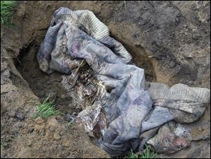 The bones of a dog are dug up in the backyard of this Toledo home.