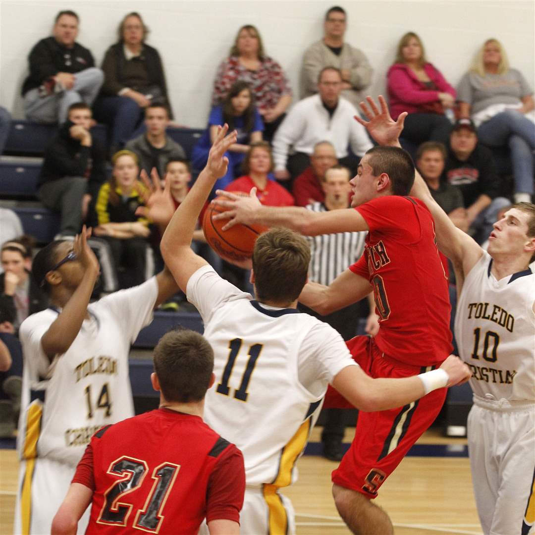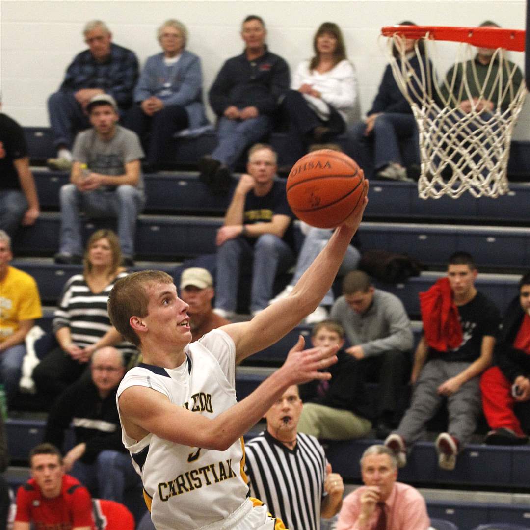 Toledo Christian's Eric Celler drives to the basket for two of his game-high 31 points.