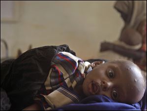 A Somali child from southern Somalia is treated in Banadir hospital in Mogadishu, Somalia.