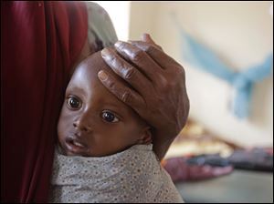 A woman from southern Somalia holds her malnourished child in Banadir hospital in Mogadishu, Somalia.