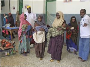 Women from southern Somalia and their malnourished children line up for services at Banadir hospital.