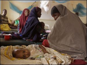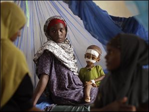 A woman sits with her child at a local hospital as she receive treatment for malnutrition at the border town of Dadaab, Kenya.