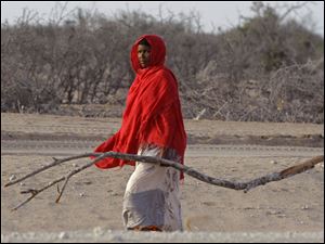 A woman carries wood for a fire near the border town of Dadaab, Kenya.